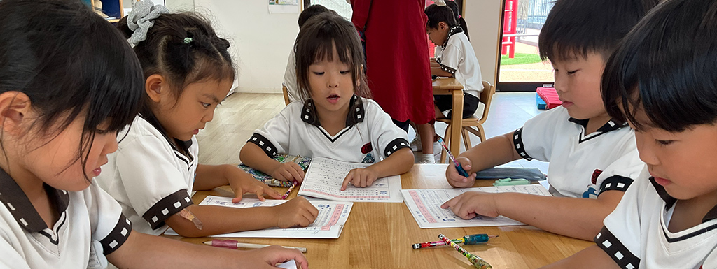 発達段階に応じた適切な指導のもと、楽しみながら「もじ」「かず」の基礎を築きます。