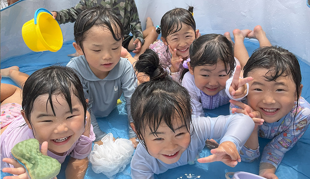 夏にはみんなで、おもいっきり水遊びやどろんこ遊びを楽しみます。