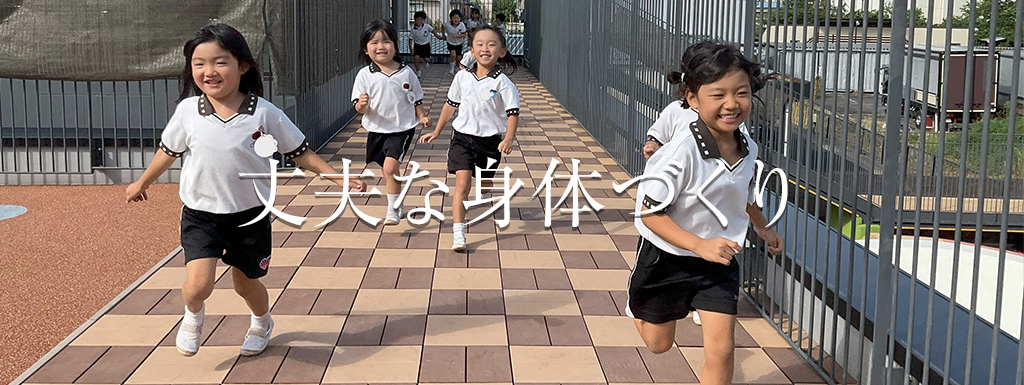 小さい子どもは、歩くことから体づくりを始めます。天気のいい日はお散歩にでかけ、色々なものに出会います。